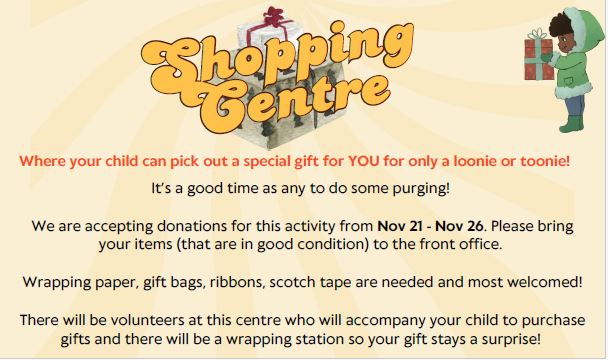 SHOPPING CENTRE - Where kids can shop for their loved ones! Click HERE for more details! Donations needed please!