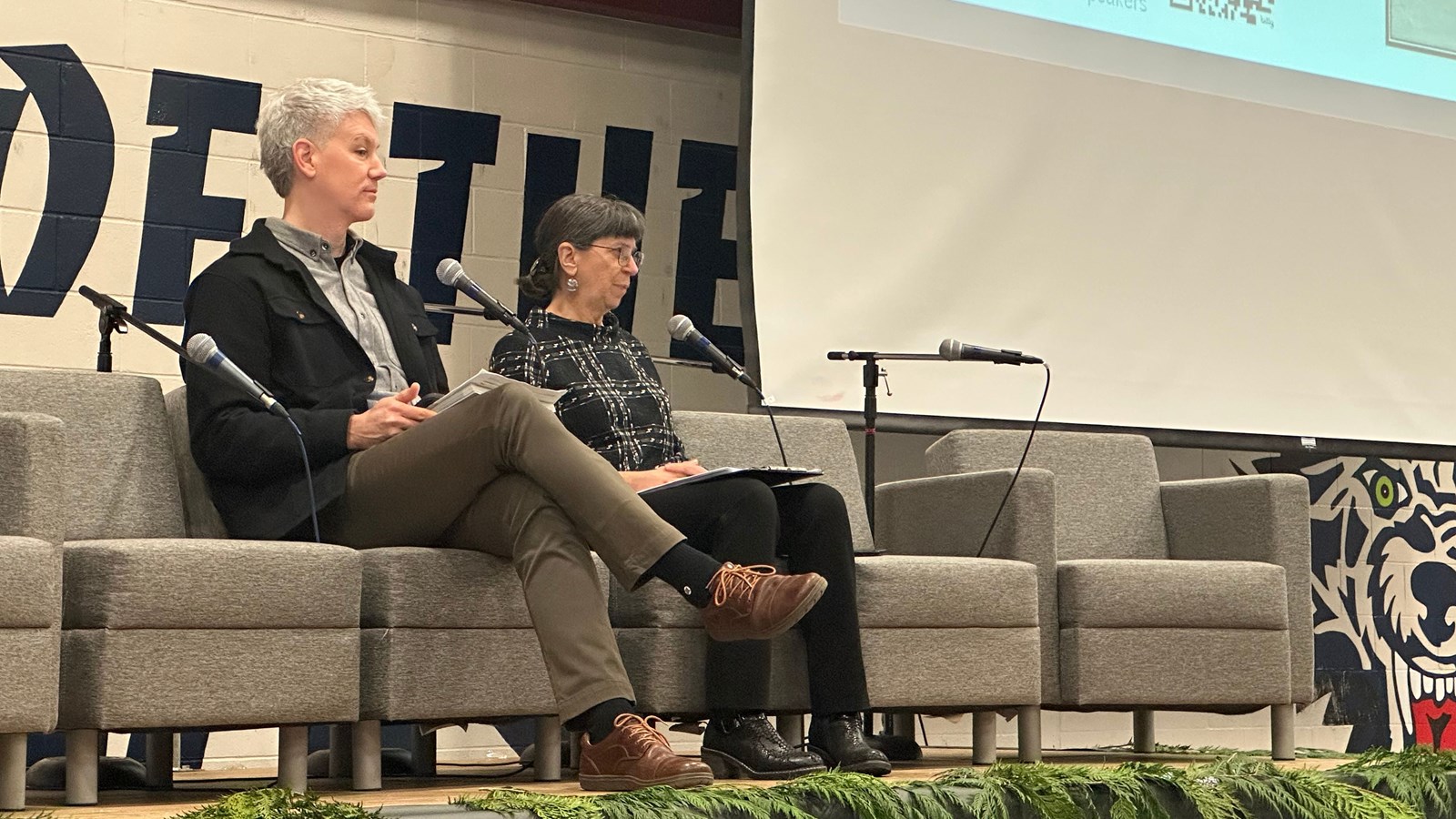The morning session at Timberline Secondary focused on the theme of identity and connection to place. Author Katherine Palmer Gordon and Brodie Guy led a keynote conversation inspired by This Place Is Who We Are, Katherine’s book which shares stories of Indigenous leadership, resilience and deep ties to land. A panel featuring Chief Chris Roberts, Alexandra Thomas, Dr. Spencer Greening and K’odi Nelson added further insight from their lived experiences and community work.
