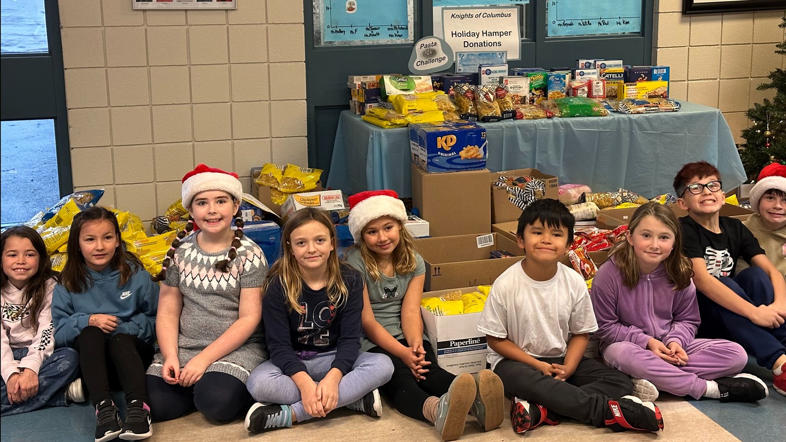 Sandowne Elementary wrapped up its pasta drive for the Knights of Columbus Christmas Hamper program with a record-breaking total of 1,239 bags collected. The three-week schoolwide challenge ended Friday morning, December 5, with students adding their final donations before pickup.